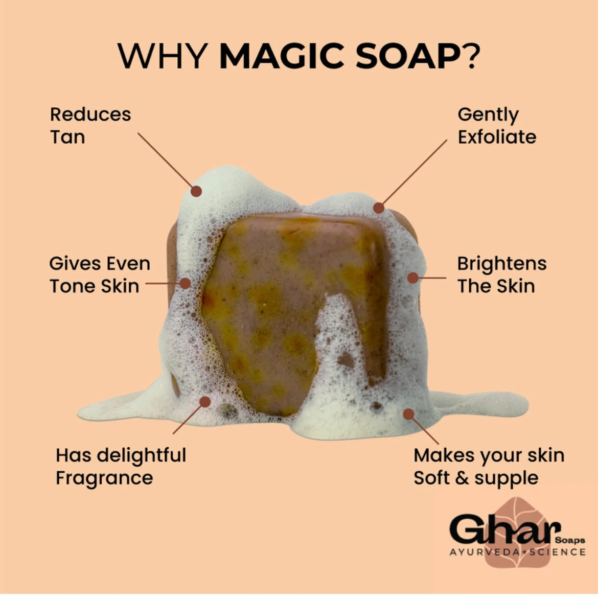 Model Name - Magic Soap Sandal Wood And Saffron for DeTan and Glowing Brightening Skin